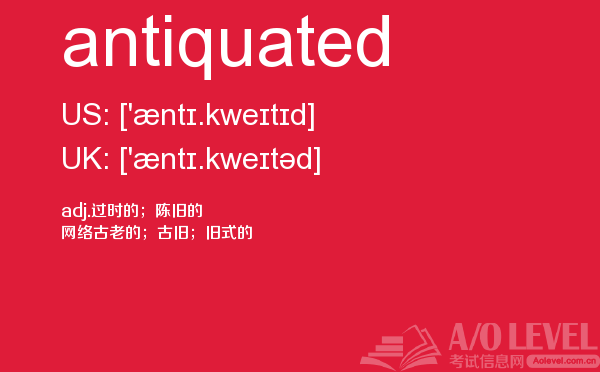 a-level课程证书被几乎所有英语授课的大学作为招收新生的入学标准。 在中国开设a-level课程旨在为中国学生提供进入国外大学的有效途径,具体目标为:培养在国内初高中成绩优秀的学生进入世界顶尖大学;培养在国内初高中成绩中等的学生进入世界一流大学;培养在国内初高中成绩一般的学生考取适合自己的大学。今天alevel考试网小编给大家详细解析a-level考试单词antiquated。如果您想了解alevel数学,alevel分数,alevel培训中心,alevel申请香港大学等关于a-level考试的相关资讯,请继续浏览并关注课窝a/o-level考试网。