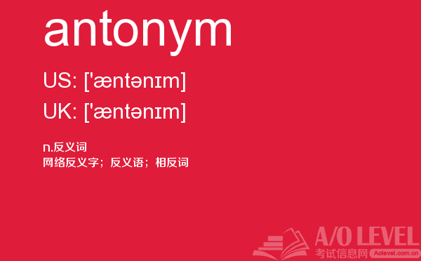 a-level 的考试将由所属的考试委员会分别于每年5-6月和10-11月在全球统一组织,成绩分别在8月和次年2月公布。关于a-level考试时间的具体内容,alevel考试网前面详细介绍过,大家可以查找alevel考试网前面的a-level考试资讯,alevel考试网每天会更新大量的alevel考试资讯,本篇要给大家介绍a-level单词antonym的全面介绍。如果您想了解alevel经济教材,alevel中文书目,alevel中文口语,a水准考试预备班怎么样等关于a-level考试的相关资讯,请继续浏览并关注课窝a/o-level考试网。