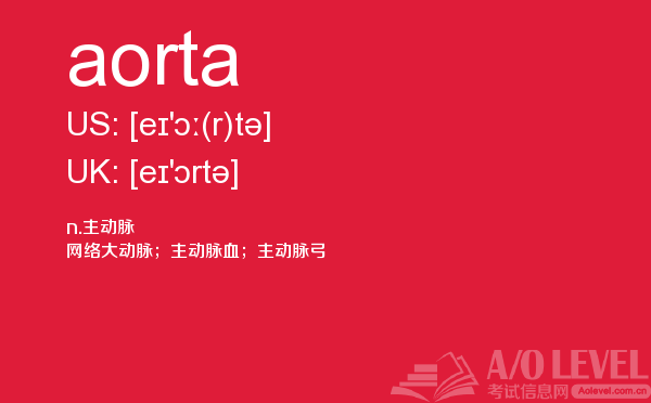 英国留学考试a-level考试考什么?a-level考试题型一定要注意积累和总结。课窝a/o-level考试网小编每天会给大家带来a-level考试的相关资讯,今天带来a-level单词aorta的解析,希望大家认真的积累a-level考试词汇。如果您想了解alevel考试价格,alevel经济知识点,爱德思alevel2017真题,a水准一年等关于a-level考试的相关资讯,请继续浏览并关注课窝a/o-level考试网。