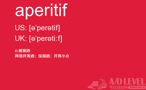 英国、加拿大、爱尔兰、澳大利亚、新西兰、新加坡等英语国家没有统一的大学入学标准,虽然它们都认可a-level证书,但是各所大学、各个专业对学生学过哪几门a-level课程以及成绩都有不同的要求。所以怎样选择课程并没有一个唯一的答案。对于如何选课的问题要根据具体情况而定。这些在你的a-level考试中都不是重要的,重要的是a-level成绩,a-level成绩取决于a-level词汇量,那么今天小编给大家带来a-level考试重点词汇aperitif的全面解析。如果您想了解alevel是什么,alevel面试,alevel去哪考试在中国,alevel成绩等关于a-level考试的相关资讯,请继续浏览并关注课窝a/o-level考试网。