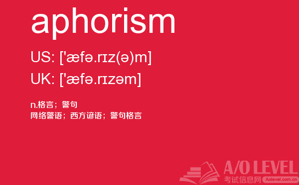 a-level课程适用于年龄在15—18之间,初中毕业以上的在校中学生或具有同等学历的职高生,通常国内a-level学校招收的是高二毕业的学生,并要求参加相关的入学考试,由于a-level课程包括教学及试卷习题等都是英文形式出现,所以这要求学生有较高的英文水平。对于a-level考试适用对象有初步了解之后,下面alevel考试网给大家带来的alevel考试中你需要重点记住的单词aphorism的详细介绍。如果您想了解alevel申请加拿大大学,alevel成绩申请港大,什么是alevel课程,alevel考试时间安排等关于a-level考试的相关资讯,请继续浏览并关注课窝a/o-level考试网。