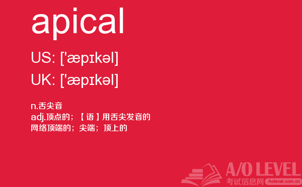 英国留学对于留学成绩的比拼越来越激烈,申请英国院校留学的一大指标a-level考试分数要求也水涨船高.虽然成绩只是申请的一部分,但不得不说,好看的英国a-level成绩是学生是否优秀的证据。放松一下跟着a/o-level考试网来学习一下a-level考试词汇apical的应用。如果您想了解alevel是什么,alevel课程培训,alevel考试地点,新加坡a水准考试等关于a-level考试的相关资讯,请继续浏览并关注课窝a/o-level考试网。