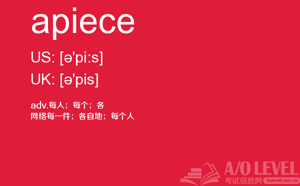 对于a-level考试,我们一再强调要加强a-level考试真题实战,多做英国a-level考试真题。放松一下,跟着a/o-level考试网来积累一下a-level考试中你会用到的单词apiece,对你的a-level考试会有很大的帮助。如果您想了解alevel考试用品,alevel写作真题,alevel词汇书,alevel非全日制培训等关于a-level考试的相关资讯,请继续浏览并关注课窝a/o-level考试网。