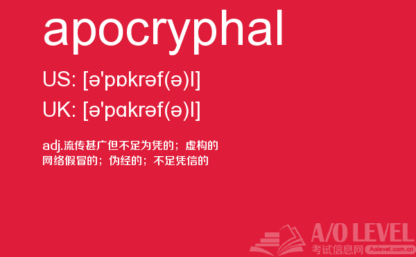 目前,a/olevel逐渐为人所熟知,很多学生都会主动了解alevel考试流程。同时也会抱怨a-level英语题比较难,任务重。那现在我们就放松一下,跟着a/o-level考试网小编来看看a-level考试中要积累的单词apocryphal,认真的学习积累。如果您想了解alevel课程培训,alevel阅读评分,剑桥大学alevel,alevel和sat等关于a-level考试的相关资讯,请继续浏览并关注课窝a/o-level考试网。