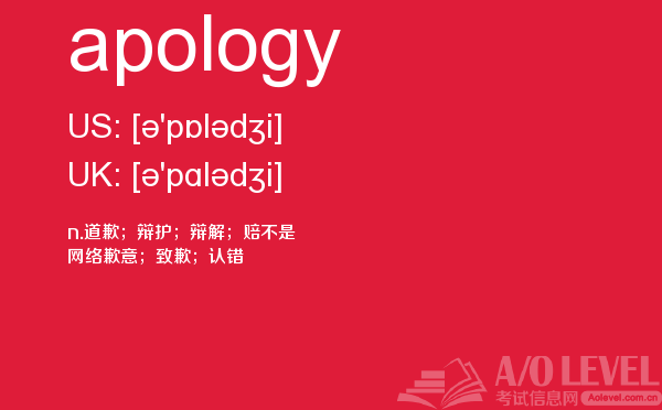 英国留学对于留学成绩的比拼越来越激烈,申请英国院校留学的一大指标a-level考试分数要求也水涨船高.虽然成绩只是申请的一部分,但不得不说,好看的英国a-level成绩是学生是否优秀的证据。放松一下跟着a/o-level考试网来学习一下a-level考试词汇apology的应用。如果您想了解alevel词汇下载,alevel报名后不去考,alevel英语词汇,a水准成绩等关于a-level考试的相关资讯,请继续浏览并关注课窝a/o-level考试网。