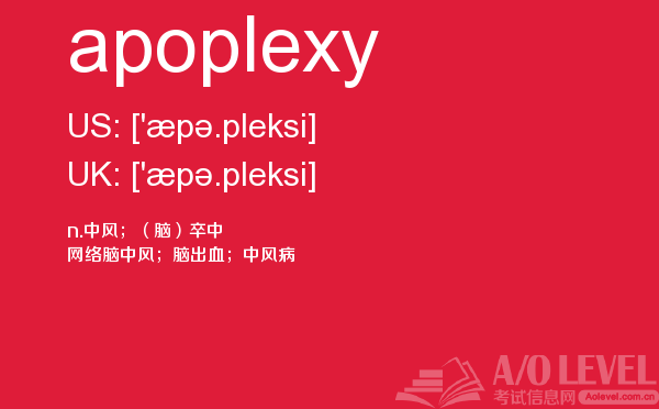 在a-level备考的过程中,想要冲刺到a-level写作的高分,相信大家都应该会知道,除了需要掌握a-level写作的一些技巧之外,优化文章中的词汇和句型也是冲刺高分的关键所在。也就是说,只有充分掌握了语法知识,才能让我们的的文章更为丰富形象。除了a-level写作,在a-level其他方面同学们也需要了解,下面课窝a/o-level考试网小编给大家带来a-level单词apoplexy的介绍。如果您想了解alevel会计辅导,alevel物理分数线,alevel学校条件,alevel经济教材等关于a-level考试的相关资讯,请继续浏览并关注课窝a/o-level考试网。