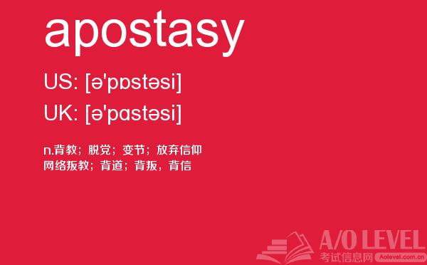 现在很多人来咨询a-level考试录取率,英国a-level考试题库的家长也依然不减,而考生们则更关心a-level教材以及a-level考试培训课程是什么样的。a/o-level考试网都会解答您。今天小编带来a/o-level考试网的内容是关于a-level词汇的apostasy单词的详细介绍。如果您想了解牛津大学alevel,上海alevel国际学校,alevel数学评分标准,alevel考试大纲等关于a-level考试的相关资讯,请继续浏览并关注课窝a/o-level考试网。