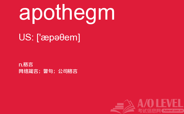 随着英国留学申请竞争的白热化,a-level成绩在学生个人简历中扮演的“入场券”角色,变得越来越重要。然而,在你参加a-level考试培训班前,你首先要对a-level考试有着一定的了解,一起跟着a/o-level考试网来看看小编今天带来a-level单词apothegm的详细介绍。如果您想了解alevel数学考试大纲,alevel考试网站,新加坡a水准试题,alevel考试考点等关于a-level考试的相关资讯,请继续浏览并关注课窝a/o-level考试网。