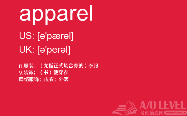 a- level课程一般在中国开设数学、进阶数学(或称高等数学)、物理、计算机学、会计学、商业学、经济学等课程供学生选择。那么关于alevel考生应该选哪些alevel课程呢?以后会给大家详细介绍,今天a/o-level考试网主要给大家全面介绍a-level词汇中的apparel单词。如果您想了解新加坡a水准难度,alevel化学还原氧化知识点,爱德思alevel申请大学,悉尼大学alevel要求等关于a-level考试的相关资讯,请继续浏览并关注课窝a/o-level考试网。