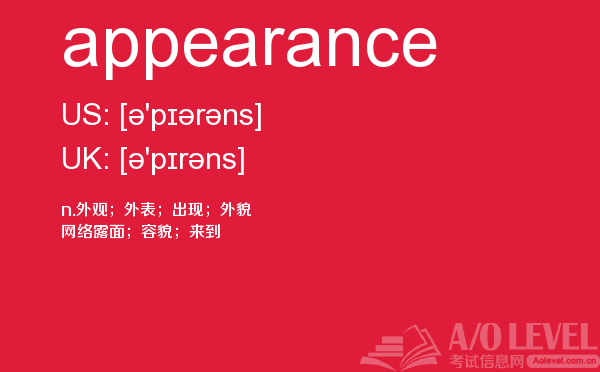 英国以其高质量的教学闻名于世,如果你还在思考a-level考试值不值得考?近几年的英国留学a-level考试的热潮足以证明一切!课窝a/o-level考试网会给大家带来a-level考试真题,a-level考试如何复习?等所有有关的a-level考试资讯。课窝a/o-level考试网今天带来a-level考试中很重要的单词appearance的详细解析,会对你有帮助。如果您想了解墨尔本大学alevel要求,alevel大学预录取时间,新加坡国alevel,英国alevel好学吗等关于a-level考试的相关资讯,请继续浏览并关注课窝a/o-level考试网。