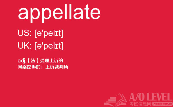英国a-level学校,从教学质量上来看私立学校更占优势,大部分中国留学生也选择私立学校来读,不过一般都是提前一年来申请学校。中国目前也有20几所a-level学校,每年也同样有走进剑桥牛津等世界顶级大学的学生。所以在国外和在国内都可以选择a-level学校来学习。在前面关于a-level选校的问题已经详细介绍过,那么今天a/o-level考试网小编主要想介绍的是a-level重难点词汇appellate。希望对大家有帮助。如果您想了解alevel成绩有效期,英国alevel高中,alevel考试官方网站,考alevel有必要吗等关于a-level考试的相关资讯,请继续浏览并关注课窝a/o-level考试网。