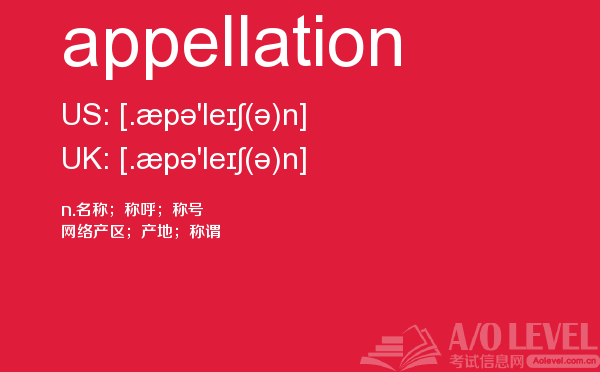 a-level 的考试将由所属的考试委员会分别于每年5-6月和10-11月在全球统一组织,成绩分别在8月和次年2月公布。关于a-level考试时间的具体内容,alevel考试网前面详细介绍过,大家可以查找alevel考试网前面的a-level考试资讯,alevel考试网每天会更新大量的alevel考试资讯,本篇要给大家介绍a-level单词appellation的全面介绍。如果您想了解alevel物理知识点整理,alevel化学2018,悉尼大学alevel要求,alevel学习计划等关于a-level考试的相关资讯,请继续浏览并关注课窝a/o-level考试网。