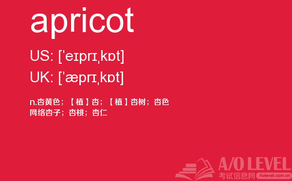 现在很多人来咨询a-level考试录取率,英国a-level考试题库的家长也依然不减,而考生们则更关心a-level教材以及a-level考试培训课程是什么样的。a/o-level考试网都会解答您。今天小编带来a/o-level考试网的内容是关于a-level词汇的apricot单词的详细介绍。如果您想了解alevel经济学答题技巧,剑桥alevel多少分是a,申请英国alevel高中,a水准考试预备班等关于a-level考试的相关资讯,请继续浏览并关注课窝a/o-level考试网。