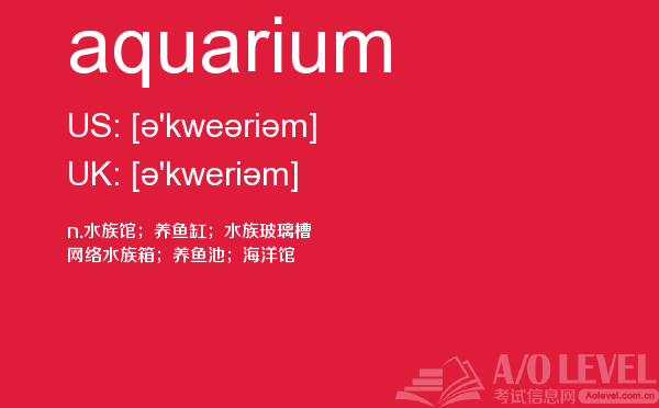 为了有a-level考试高分,很多童靴都参加英国高中课程a-level考试前都会做很多a-level考试真题。a-level考试备考要有一定的方法,课窝a/o-level考试网每天都会给大家带来a-level考试资讯,a-level考试备考相关的内容,今天课窝a/o-level考试网小编给大家带来关于a-level单词aquarium的详细介绍。如果您想了解奥克兰大学alevel,alevel考试时间,alevel视频教程,新加坡a水准报名费等关于a-level考试的相关资讯,请继续浏览并关注课窝a/o-level考试网。