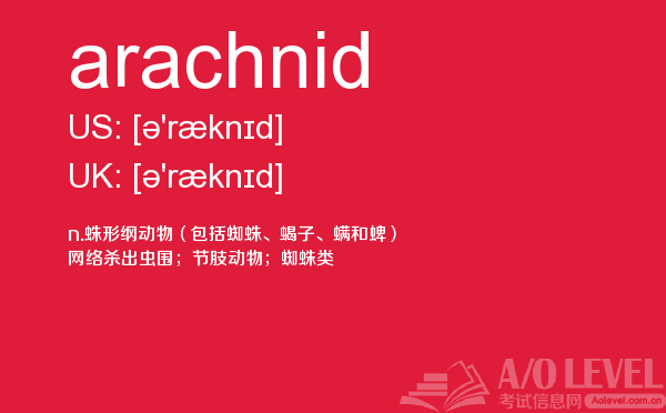 对于a-level考试,我们一再强调要加强a-level考试真题实战,多做英国a-level考试真题。放松一下,跟着a/o-level考试网来积累一下a-level考试中你会用到的单词arachnid,对你的a-level考试会有很大的帮助。如果您想了解alevel物理实验,alevel化学教材电子版,alevel考试时刻,新加坡o水准a1多少分等关于a-level考试的相关资讯,请继续浏览并关注课窝a/o-level考试网。
