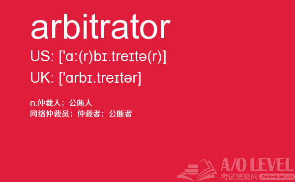 英国、加拿大、爱尔兰、澳大利亚、新西兰、新加坡等英语国家没有统一的大学入学标准,虽然它们都认可a-level证书,但是各所大学、各个专业对学生学过哪几门a-level课程以及成绩都有不同的要求。所以怎样选择课程并没有一个唯一的答案。对于如何选课的问题要根据具体情况而定。这些在你的a-level考试中都不是重要的,重要的是a-level成绩,a-level成绩取决于a-level词汇量,那么今天小编给大家带来a-level考试重点词汇arbitrator的全面解析。如果您想了解alevel中文书目,英国alevel课程是什么,alevel课程选择攻略,alevel考试考点等关于a-level考试的相关资讯,请继续浏览并关注课窝a/o-level考试网。