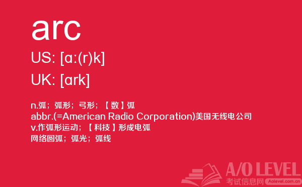 英国留学对于留学成绩的比拼越来越激烈,申请英国院校留学的一大指标a-level考试分数要求也水涨船高.虽然成绩只是申请的一部分,但不得不说,好看的英国a-level成绩是学生是否优秀的证据。放松一下跟着a/o-level考试网来学习一下a-level考试词汇arc的应用。如果您想了解高中alevel考试,alevel物理常备词汇,alevel非全日制培训,alevel是毕业考试吗等关于a-level考试的相关资讯,请继续浏览并关注课窝a/o-level考试网。