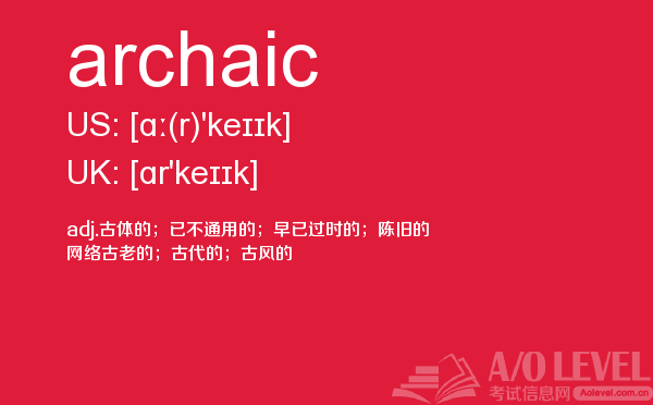 现在申请英国院校的中国孩子非常多,几乎每一个学生都在为一种叫做英国a-level的考试而努力着。a/o-level考试网老师为大家解析a-level考试重难点单词archaic,大家认真学习,会有帮助。如果您想了解alevel物理中文,alevel考试数学试卷,alevel容易拿a的科目,alevel介绍等关于a-level考试的相关资讯,请继续浏览并关注课窝a/o-level考试网。