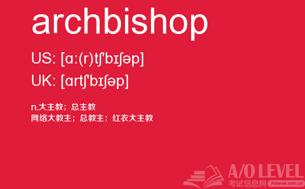 a-level(general certificate of education advanced level ),英国高中课程,是英国全民课程体系,是英国普通中等教育证书考试高级水平课程,也是英国学生的大学入学考试课程。今天alevel考试网小编给大家带来的alevel考试单词archbishop的详细介绍。希望大家能够认真的阅读。如果您想了解alevel物理真题,如何成为alevel老师,英国读alevel,为什么要考alevel课程等关于a-level考试的相关资讯,请继续浏览并关注课窝a/o-level考试网。