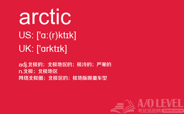 英国a-level考试是英国留学生去英国留学需要参加的考试,很多考生担心a-level考试分数要求高,英国a-level考试难度大,别担心,只要认真的学习a-level考试内容,小编相信大家一定能够考得a-level高分。今天a/o-level考试网给大家带来单词arctic的全面解析。如果您想了解alevel到底是什么课程,alevel考试要求,新加坡a水准好考吗,alevel网课等关于a-level考试的相关资讯,请继续浏览并关注课窝a/o-level考试网。