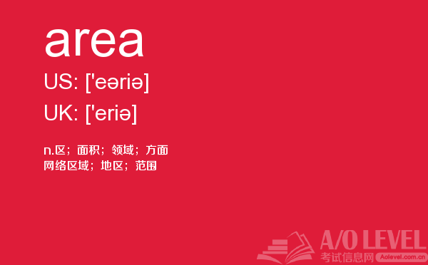 a-level课程适用于年龄在15—18之间,初中毕业以上的在校中学生或具有同等学历的职高生,通常国内a-level学校招收的是高二毕业的学生,并要求参加相关的入学考试,由于a-level课程包括教学及试卷习题等都是英文形式出现,所以这要求学生有较高的英文水平。对于a-level考试适用对象有初步了解之后,下面alevel考试网给大家带来的alevel考试中你需要重点记住的单词area的详细介绍。如果您想了解alevel申请加拿大大学,alevel成绩申请港大,什么是alevel课程,alevel考试时间安排等关于a-level考试的相关资讯,请继续浏览并关注课窝a/o-level考试网。