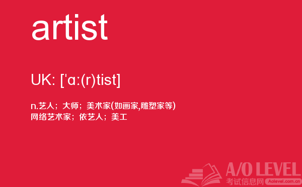 英国a-level考试是英国留学生去英国留学需要参加的考试,很多考生担心a-level考试分数要求高,英国a-level考试难度大,别担心,只要认真的学习a-level考试内容,小编相信大家一定能够考得a-level高分。今天a/o-level考试网给大家带来单词artist的全面解析。如果您想了解alevel经济教材,alevel中文书目,alevel中文口语,a水准考试预备班怎么样等关于a-level考试的相关资讯,请继续浏览并关注课窝a/o-level考试网。