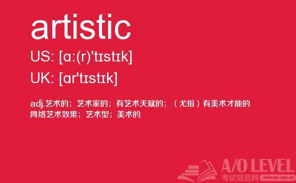 a- level课程一般在中国开设数学、进阶数学(或称高等数学)、物理、计算机学、会计学、商业学、经济学等课程供学生选择。那么关于alevel考生应该选哪些alevel课程呢?以后会给大家详细介绍,今天a/o-level考试网主要给大家全面介绍a-level词汇中的artistic单词。如果您想了解alevel英语词汇,alevel官网报名,剑桥alevel课程费用,alevel英语试题等关于a-level考试的相关资讯,请继续浏览并关注课窝a/o-level考试网。