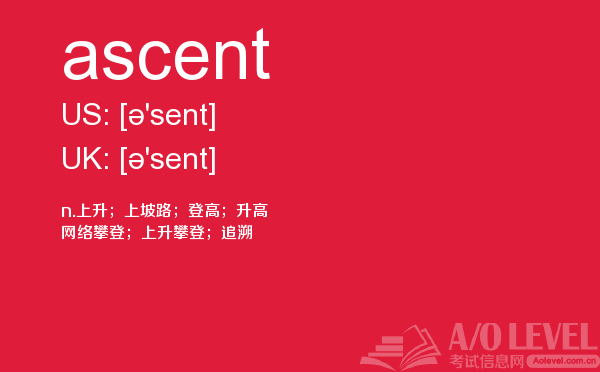 对于a-level考试,我们一再强调要加强a-level考试真题实战,多做英国a-level考试真题。放松一下,跟着a/o-level考试网来积累一下a-level考试中你会用到的单词ascent,对你的a-level考试会有很大的帮助。如果您想了解alevel物理实验,alevel化学教材电子版,alevel考试时刻,新加坡o水准a1多少分等关于a-level考试的相关资讯,请继续浏览并关注课窝a/o-level考试网。