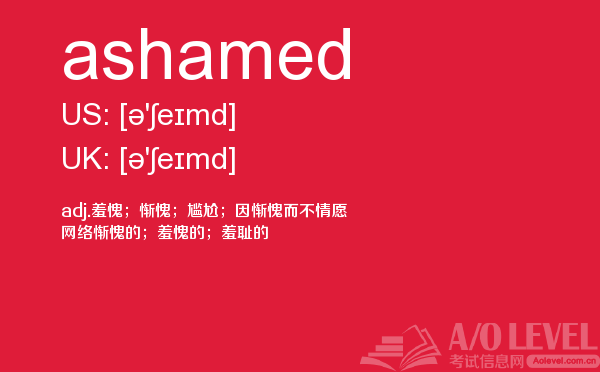 英国a-level考试报名费很好解决,那怎样才能达到a-level考试词汇量要求呢?别再纠结于a-level考试分数要求了,今天我们来一起看看a/o-level考试网今天带给你的a-level单词ashamed的讲解。如果您想了解alevel是机考吗,alevel培训学费,剑桥alevel课程,alevel物理讲义等关于a-level考试的相关资讯,请继续浏览并关注课窝a/o-level考试网。