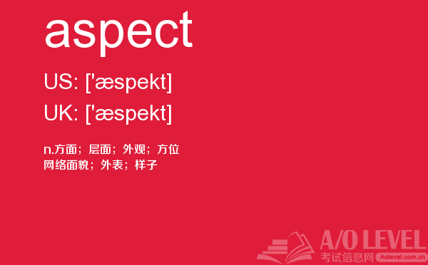 今天课窝a/o-level考试网小编给大家带来alevel考试至关重要的内容a-level单词aspect的详细介绍。希望大家能够认真的阅读,在备考a-level中会用到,关于a-level考试时间,alevel考试费用等相关问题,可以关注课窝a/o-level考试网。如果您想了解交大alevel学费,新加坡大学alevel,alevel考试网,alevel词汇等关于a-level考试的相关资讯,请继续浏览并关注课窝a/o-level考试网。