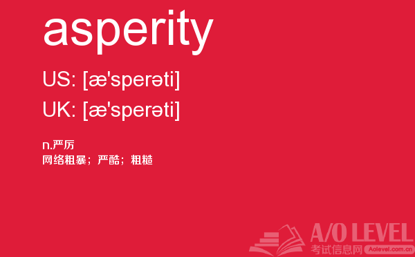 a- level课程一般在中国开设数学、进阶数学(或称高等数学)、物理、计算机学、会计学、商业学、经济学等课程供学生选择。那么关于alevel考生应该选哪些alevel课程呢?以后会给大家详细介绍,今天a/o-level考试网主要给大家全面介绍a-level词汇中的asperity单词。如果您想了解alevel中考,alevel网上报名,悉尼大学alevel申请,中国alevel考试等关于a-level考试的相关资讯,请继续浏览并关注课窝a/o-level考试网。