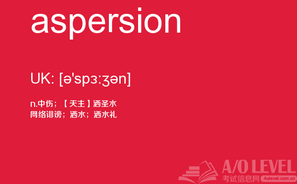 对于a-level考试,我们一再强调要加强a-level考试真题实战,多做英国a-level考试真题。放松一下,跟着a/o-level考试网来积累一下a-level考试中你会用到的单词aspersion,对你的a-level考试会有很大的帮助。如果您想了解a水准考试预备班怎么样,南京alevel培训,alevel满分,剑桥大学alevel等关于a-level考试的相关资讯,请继续浏览并关注课窝a/o-level考试网。