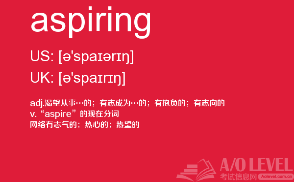 现在申请英国院校的中国孩子非常多,几乎每一个学生都在为一种叫做英国a-level的考试而努力着。a/o-level考试网老师为大家解析a-level考试重难点单词aspiring,大家认真学习,会有帮助。如果您想了解新加坡国立大学a水准,中国alevel考试,alevel怎么考试,国际高中的课程alevel等关于a-level考试的相关资讯,请继续浏览并关注课窝a/o-level考试网。