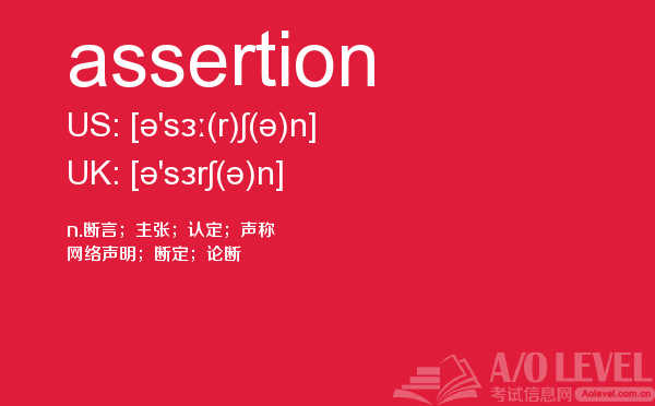 英国留学对于留学成绩的比拼越来越激烈,申请英国院校留学的一大指标a-level考试分数要求也水涨船高.虽然成绩只是申请的一部分,但不得不说,好看的英国a-level成绩是学生是否优秀的证据。放松一下跟着a/o-level考试网来学习一下a-level考试词汇assertion的应用。如果您想了解alevel考试指南,alevel课程有年龄限制,alevel真题下载,英国alevel考试试卷等关于a-level考试的相关资讯,请继续浏览并关注课窝a/o-level考试网。