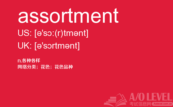 目前,a/olevel逐渐为人所熟知,很多学生都会主动了解alevel考试流程。同时也会抱怨a-level英语题比较难,任务重。那现在我们就放松一下,跟着a/o-level考试网小编来看看a-level考试中要积累的单词assortment,认真的学习积累。如果您想了解alevel课程培训,alevel阅读评分,剑桥大学alevel,alevel和sat等关于a-level考试的相关资讯,请继续浏览并关注课窝a/o-level考试网。