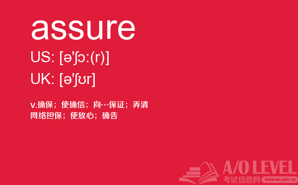 现在很多人来咨询a-level考试录取率,英国a-level考试题库的家长也依然不减,而考生们则更关心a-level教材以及a-level考试培训课程是什么样的。a/o-level考试网都会解答您。今天小编带来a/o-level考试网的内容是关于a-level词汇的assure单词的详细介绍。如果您想了解alevel什么成绩报考香港大学商科,alevel数学词汇,alevel到底是什么课程,考alevel有年龄限制吗等关于a-level考试的相关资讯,请继续浏览并关注课窝a/o-level考试网。