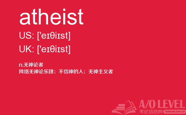 a-level 的考试将由所属的考试委员会分别于每年5-6月和10-11月在全球统一组织,成绩分别在8月和次年2月公布。关于a-level考试时间的具体内容,alevel考试网前面详细介绍过,大家可以查找alevel考试网前面的a-level考试资讯,alevel考试网每天会更新大量的alevel考试资讯,本篇要给大家介绍a-level单词atheist的全面介绍。如果您想了解alevel国外考试,alevel词汇,alevel教育网,alevel物理考试2018等关于a-level考试的相关资讯,请继续浏览并关注课窝a/o-level考试网。