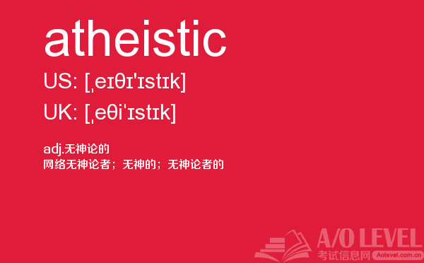 英国a-level入学考试的机会真的很少,每年就5-6月和10-11月两场考试。所以千万别因为不必要的原因,影响了a-level入学考试。为了让大家更好的在英国留学,a/o-level考试网会为大家带来a-level考试相关的资讯,一起来看看a/o-level考试网今天带来的词汇atheistic的解析。如果您想了解新加坡大学alevel,新加坡a水准考试试题,上海alevel中心,alevel考试时间费用等关于a-level考试的相关资讯,请继续浏览并关注课窝a/o-level考试网。