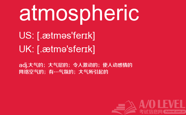 就读于国内学校的学生, 在申请英国学校时需要提交英国a-level考试成绩。很多考生因此英国a-level考试搞得头疼,放松一下,跟着a/o-level考试网来看看英国留学资讯吧!今天课窝a/o-level考试网小编给大家带来a-level考试重点词汇atmospheric的全解,对你肯定有帮助。如果您想了解alevel网课,alevel官网,alevel培训费用,alevel化学知识点整理等关于a-level考试的相关资讯,请继续浏览并关注课窝a/o-level考试网。