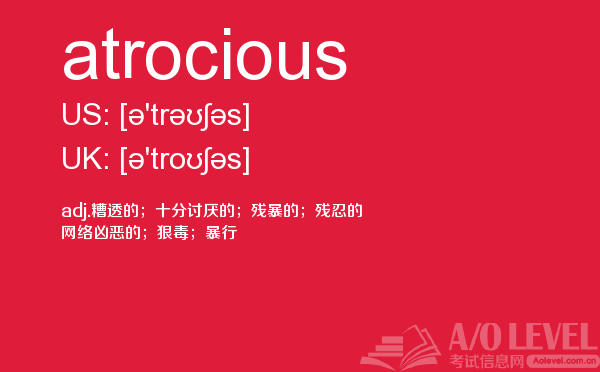 随著学生的素质提升,各大a-level课程培训班的师资和英国a-level题库也不断的完善,近年来学生考出来a-level分数也不断上涨。但是去英国留学,对英国留学资讯和英国的a-level考试资讯都是需要了解的,下面一起跟着a/o-level考试网来看看a-level词汇之atrocious的详细介绍。如果您想了解国内知名alevel培训,alevel课程自学,a水准考试试题,alevel艺术学什么等关于a-level考试的相关资讯,请继续浏览并关注课窝a/o-level考试网。