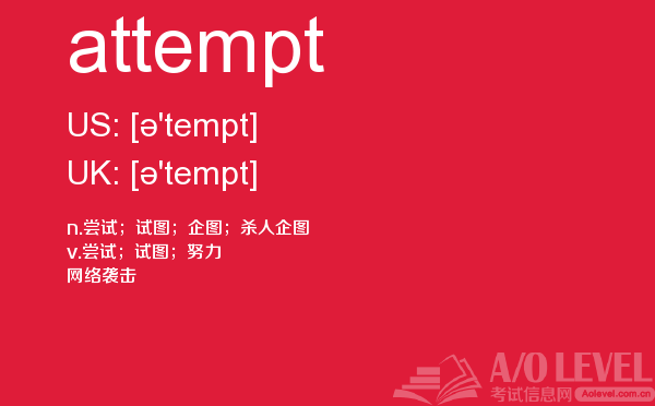 就读于国内学校的学生, 在申请英国学校时需要提交英国a-level考试成绩。很多考生因此英国a-level考试搞得头疼,放松一下,跟着a/o-level考试网来看看英国留学资讯吧!今天课窝a/o-level考试网小编给大家带来a-level考试重点词汇attempt的全解,对你肯定有帮助。如果您想了解alevel考试局比较,alevel课程物理,alevel真题搜索,alevel成绩网上查询等关于a-level考试的相关资讯,请继续浏览并关注课窝a/o-level考试网。