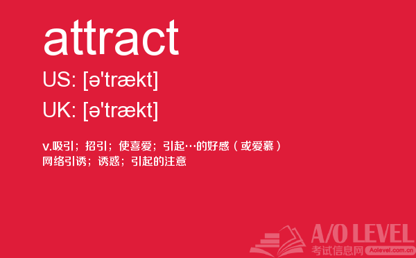 英国、加拿大、爱尔兰、澳大利亚、新西兰、新加坡等英语国家没有统一的大学入学标准,虽然它们都认可a-level证书,但是各所大学、各个专业对学生学过哪几门a-level课程以及成绩都有不同的要求。所以怎样选择课程并没有一个唯一的答案。对于如何选课的问题要根据具体情况而定。这些在你的a-level考试中都不是重要的,重要的是a-level成绩,a-level成绩取决于a-level词汇量,那么今天小编给大家带来a-level考试重点词汇attract的全面解析。如果您想了解a水准考试h1h2,alevel辅导上海,alevel公立学校,a水准考试预科班等关于a-level考试的相关资讯,请继续浏览并关注课窝a/o-level考试网。