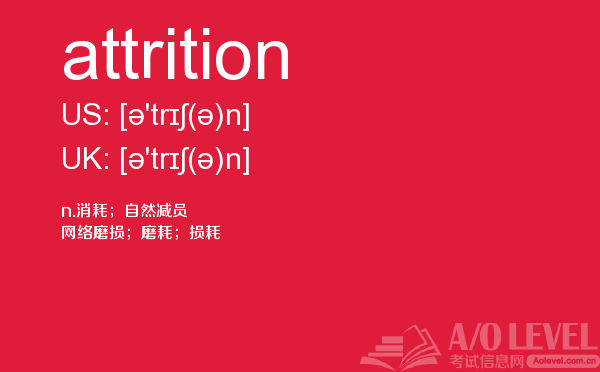 a-level 的考试将由所属的考试委员会分别于每年5-6月和10-11月在全球统一组织,成绩分别在8月和次年2月公布。关于a-level考试时间的具体内容,alevel考试网前面详细介绍过,大家可以查找alevel考试网前面的a-level考试资讯,alevel考试网每天会更新大量的alevel考试资讯,本篇要给大家介绍a-level单词attrition的全面介绍。如果您想了解墨尔本大学alevel申请条件,新加坡a水准优势,悉尼大学alevel申请,alevel时间等关于a-level考试的相关资讯,请继续浏览并关注课窝a/o-level考试网。
