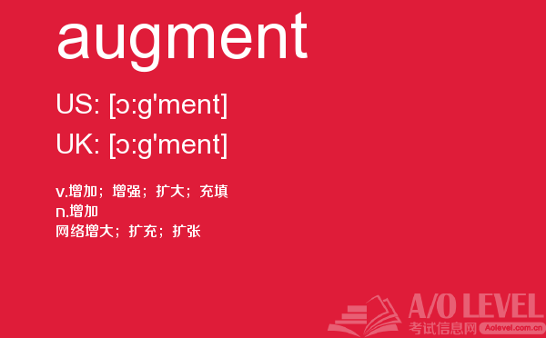 现在申请英国院校的中国孩子非常多,几乎每一个学生都在为一种叫做英国a-level的考试而努力着。a/o-level考试网老师为大家解析a-level考试重难点单词augment,大家认真学习,会有帮助。如果您想了解英国alevel官网,alevel学校考试难度,alevel数学内容,新加坡a水准考试局等关于a-level考试的相关资讯,请继续浏览并关注课窝a/o-level考试网。