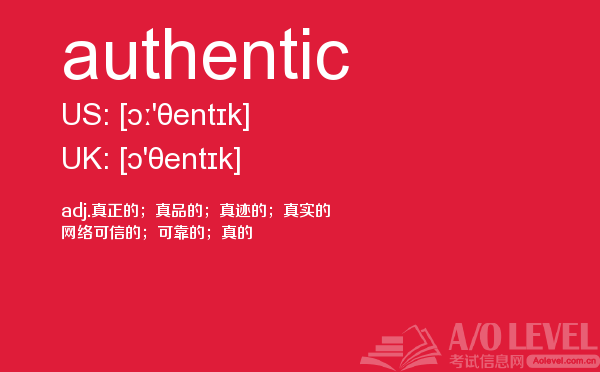 a-level课程适用于年龄在15—18之间,初中毕业以上的在校中学生或具有同等学历的职高生,通常国内a-level学校招收的是高二毕业的学生,并要求参加相关的入学考试,由于a-level课程包括教学及试卷习题等都是英文形式出现,所以这要求学生有较高的英文水平。对于a-level考试适用对象有初步了解之后,下面alevel考试网给大家带来的alevel考试中你需要重点记住的单词authentic的详细介绍。如果您想了解alevel申请加拿大大学,alevel成绩申请港大,什么是alevel课程,alevel考试时间安排等关于a-level考试的相关资讯,请继续浏览并关注课窝a/o-level考试网。