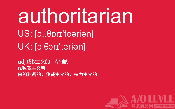 现在申请英国院校的中国孩子非常多,几乎每一个学生都在为一种叫做英国a-level的考试而努力着。a/o-level考试网老师为大家解析a-level考试重难点单词authoritarian,大家认真学习,会有帮助。如果您想了解alevel经济essay,alevel成绩有效期,alevel进阶数学分数段,什么是alevel课程等关于a-level考试的相关资讯,请继续浏览并关注课窝a/o-level考试网。