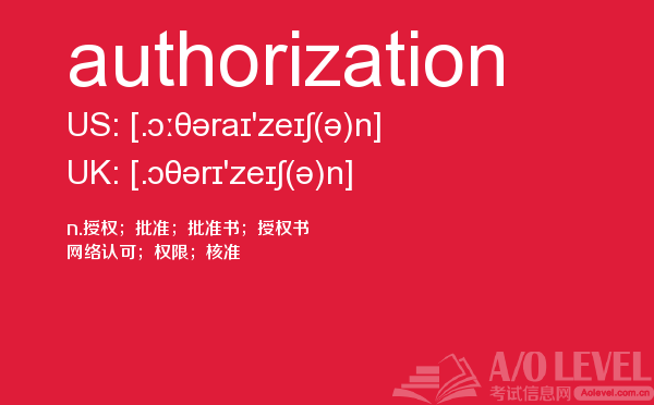现在很多人来咨询a-level考试录取率,英国a-level考试题库的家长也依然不减,而考生们则更关心a-level教材以及a-level考试培训课程是什么样的。a/o-level考试网都会解答您。今天小编带来a/o-level考试网的内容是关于a-level词汇的authorization单词的详细介绍。如果您想了解alevel难度,alevel课程有年龄限制,alevel考试时间,alevel课程价格等关于a-level考试的相关资讯,请继续浏览并关注课窝a/o-level考试网。