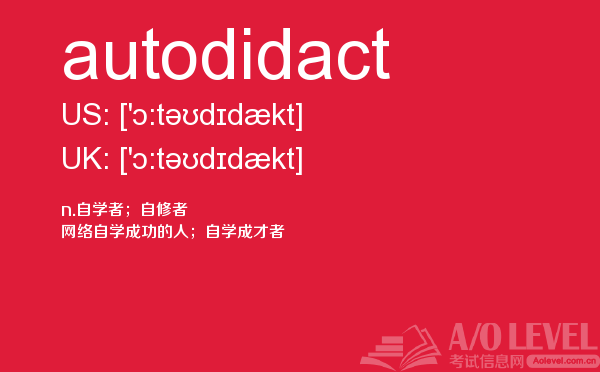 a-level词汇量受到的关注越来越高,很多家长担心a-level考试培训费用,a-level考试录取竞争会不会越来越激烈?这些问题在课窝a/o-level考试网小编都会给大家带来详细介绍,今天a/o-level考试网小编给大家带来的是在a-level考试中的重点词汇autodidact的详细介绍。如果您想了解查询alevel考试报名信息2018,a水准考试报名,alevel介绍,alevel品牌等关于a-level考试的相关资讯,请继续浏览并关注课窝a/o-level考试网。