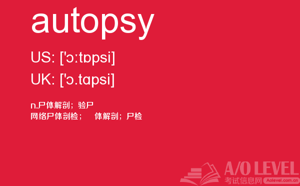 a-level(general certificate of education advanced level ),英国高中课程,是英国全民课程体系,是英国普通中等教育证书考试高级水平课程,也是英国学生的大学入学考试课程。今天alevel考试网小编给大家带来的alevel考试单词autopsy的详细介绍。希望大家能够认真的阅读。如果您想了解alevel范文,alevel经济学教材目录,alevel课程价格,alevel考场地址等关于a-level考试的相关资讯,请继续浏览并关注课窝a/o-level考试网。