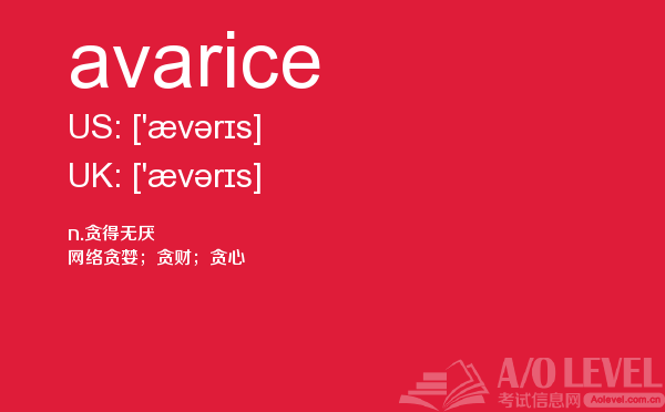 英国留学对于留学成绩的比拼越来越激烈,申请英国院校留学的一大指标a-level考试分数要求也水涨船高.虽然成绩只是申请的一部分,但不得不说,好看的英国a-level成绩是学生是否优秀的证据。放松一下跟着a/o-level考试网来学习一下a-level考试词汇avarice的应用。如果您想了解自学alevel申请大学,为什么要考alevel课程,牛津大学alevel,新加坡a水准考题等关于a-level考试的相关资讯,请继续浏览并关注课窝a/o-level考试网。